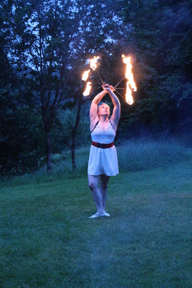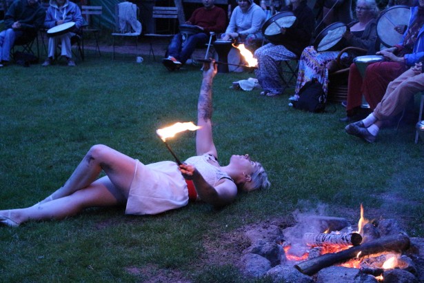 On the Friday evening we had a freestyle drum circle around the camp fire and we were joined by Lucy the fire performer